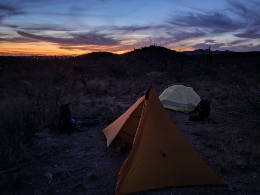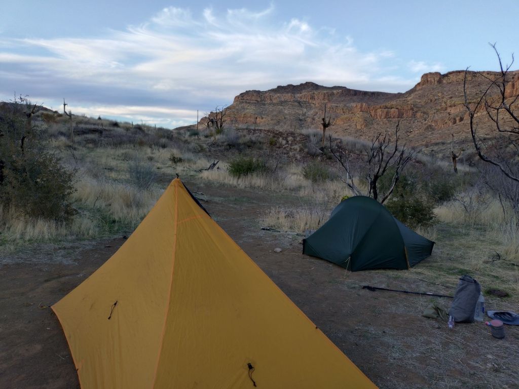 Camped at over 7000′, the wind was cutting but we found a sheltered spot on the ridge. Still, the night was very cold.