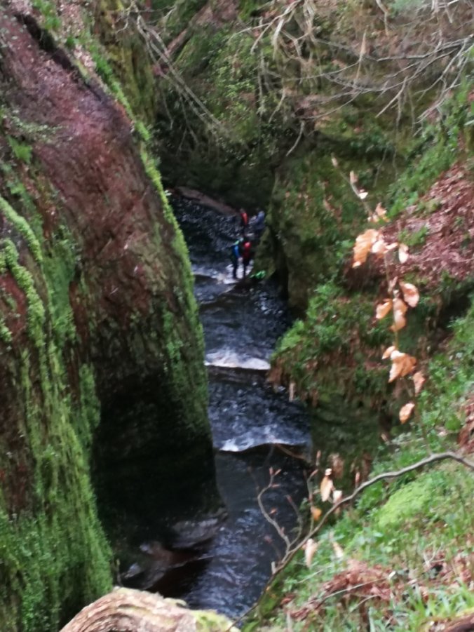 Took a detour to Devil’s Pulpit, a spectacular gorge which was hard to find and even harder to get to. Resisted the urge to laugh Freddy down to steal his sitmap. I will continue in having a cold arse when we stop.