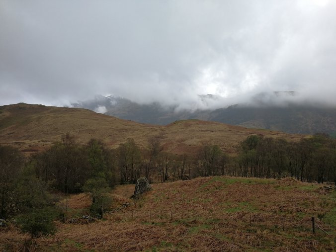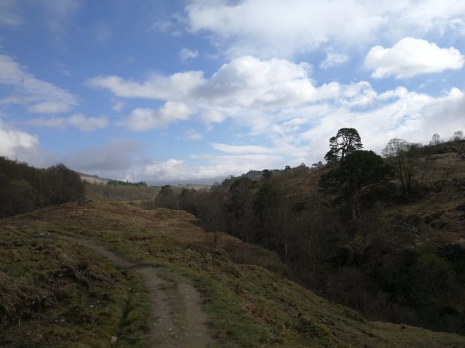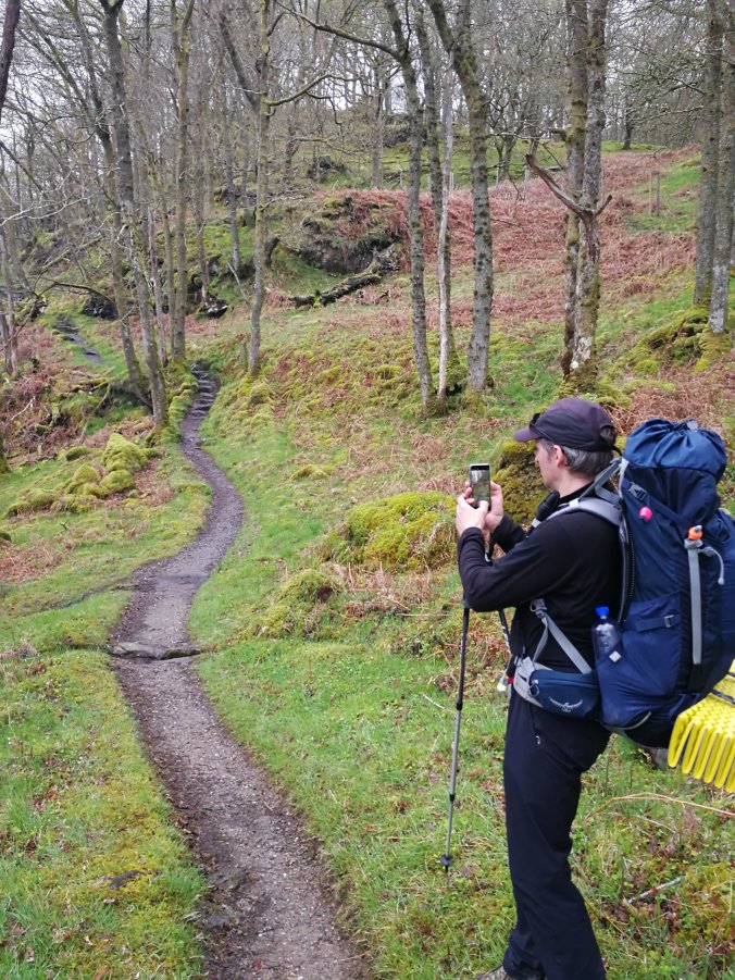 Now today we only covered 11 miles but the subsequent were hard miles – steep inclines up and down the Lochside with awkward ground, many large rocks with ankle-breaker cleaves. Walking poles today were a lifesaver.
