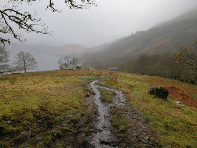 Hopped up Conic Hill and got a great view of Loch Lomond, one that was shortly to disappear as the mist rolled in. Descending into Balmaha we dropped in on a B&B Freddy once stayed in and were offered tea and more importantly WiFi which I used to kick off more form filling for the new job.