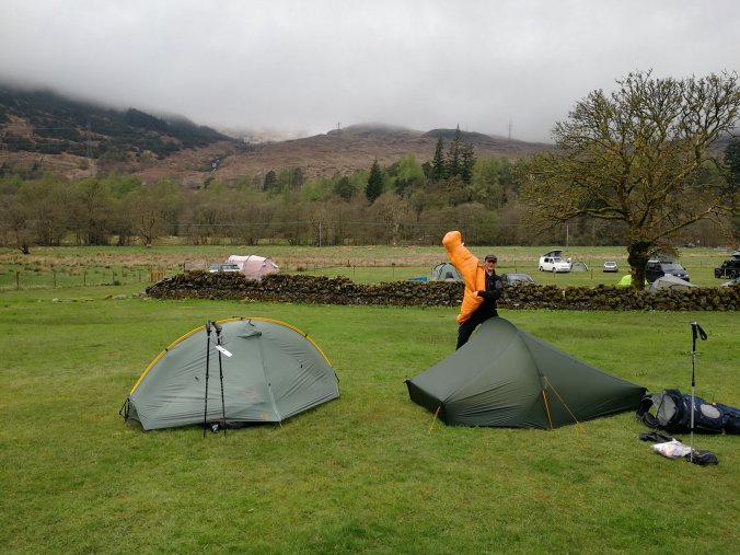 At Kinlochleven there is a rather nice campsite, so we took a short day (a nero? I need to get into PCT speak). The ice climbing centre was open so coffee was enjoyed in the dry. We grabbed the best spot in the campsite beforehand – Freddy’s nous most welcome.