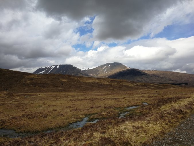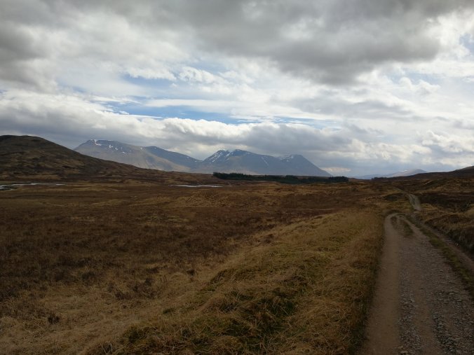 It was an overcast day as we crossed the Orchy to enter Rannoch moor. However visibility was good and the clouds just added to the atmosphere as we crossed Rannoch Moor.
