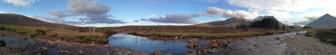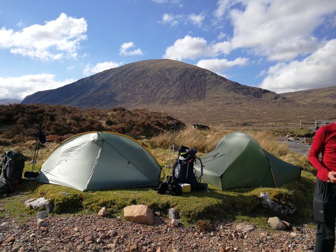 The Kingshouse Hotel was under refurbishment, which was a shame, but we found a beautiful camping spot on the river. Almost immediately, the clouds disappeared an we had a gloriously sunny afternoon! A really idyllic spot with spectacular views.