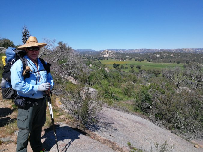 Got up and saw the leavers off again, before my final pack up. Larry ‘Commander’ Bevins arrived as planned at 8.30am and we had a pleasant drive to the trailhead with Larry pointing out landmarks and occasional glimpses of the trail as we went. He graciously refused any payment for the petrolI couldn’t quite believe it when I arrived at the monument, an exposed spot with high winds and the barbed wire of the Mexican border behind.I donned my Calum’s Cabin and BLF gear for the obligatory photos.