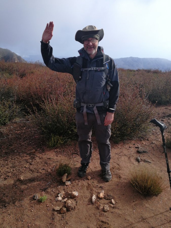 There was light rain too, and this combined with the desert dust made everything a bit mucky. Was a bit late getting moving but the cool weather and easy going trail made the miles relatively easy. However the wind didn’t ease until lunch and it was cold when we stopped.