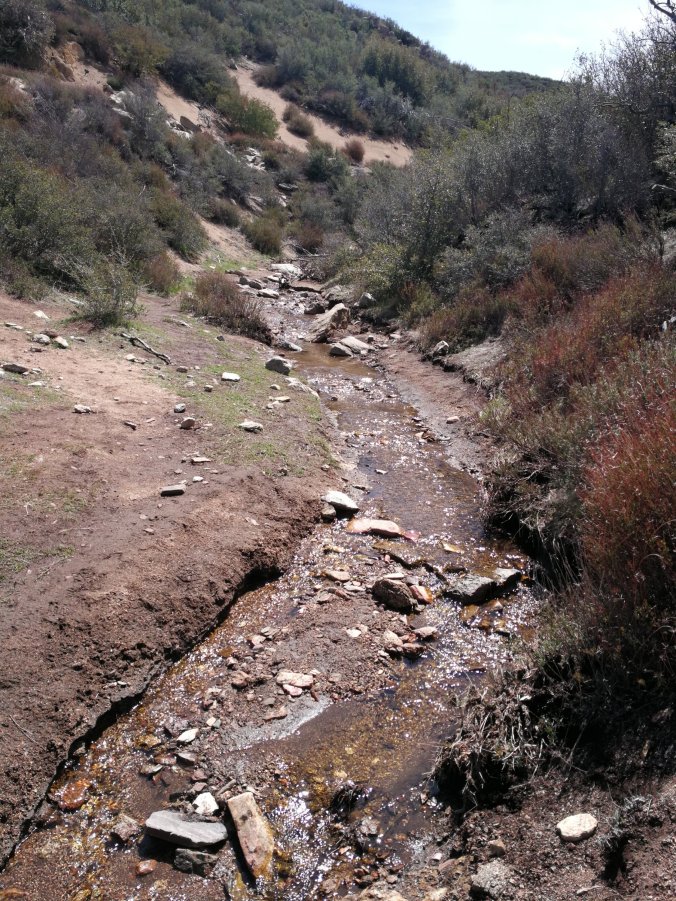 Put on a few easy miles and a steep descent into a canyon where a handful of hikers are camping tonight, with the benefit of a small stream just about still flowing.