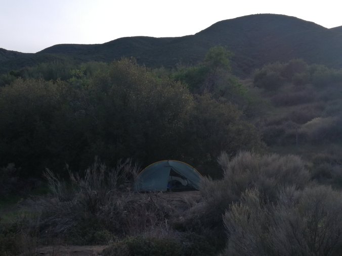 Well, that was a stormy night. Took me a while to sleep because I was watching the tent brace against the wind and the pole flex and bend. I added a couple of guy lines to stabilise before I went to bed and I’m glad I did.