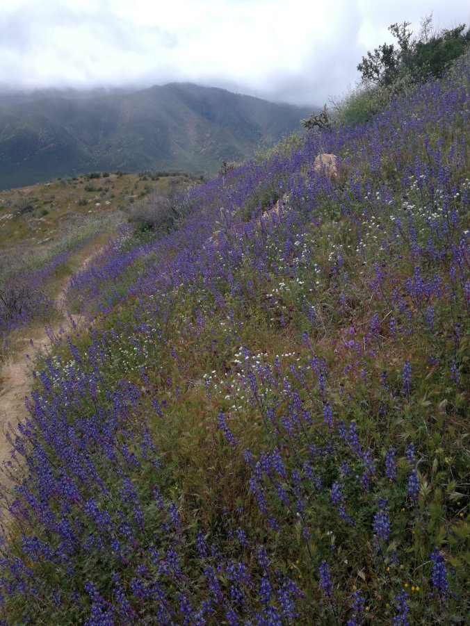 A very pleasant, easy and uneventful day. The trail mostly wound round the contours so little climbing or descending. Bumped into a few people already known and a few new ones.This winter has been unusually wet so the desert is in bloom; so many wild flowers and butterflies!Found a nice spot to camp with a great view about 8 miles short of Barrel Spring. From there I’ll get a ride to Mountain Valley Retreat where I’ll get a bed, showers and washing facilities, for a very reasonable price. See my feet below; in the desert dust gets everywhere.I’ll be clean for at least a day or two