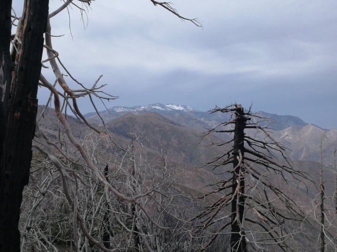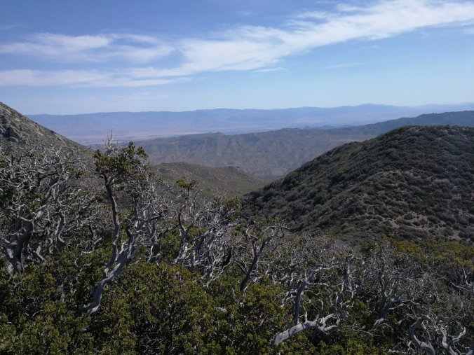 Anyhow, the last few miles were a mass of fallen trees and the trail down to Apache Spring was almost non-existent. None the less I made it, got some water, and pitched my tent. My gourmet dinner was Idahoan instant potatoes and pink salmon, in the dark! I am at 6847′, probably my height record.