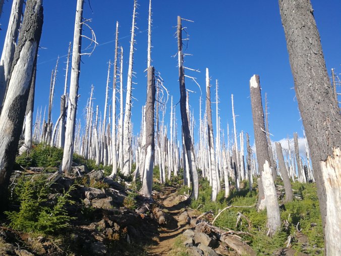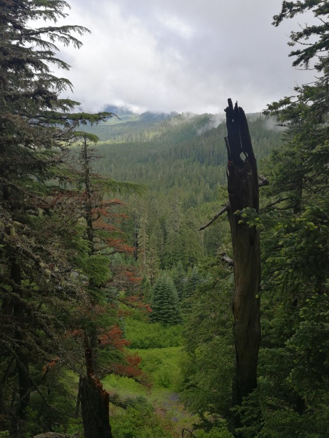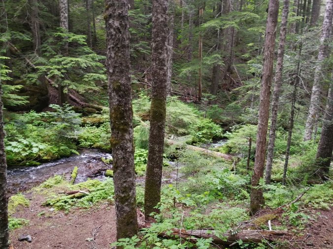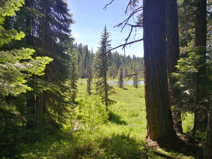 Olallie Lake Resort is a lovely place, hard to get to and with no WiFi or mobile signal, so a great place for a getaway. They have cabins to rent right on the lake. Sadly we had to get some miles in and walked for a few hours through thick forest.