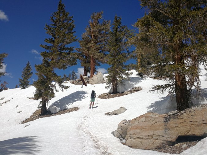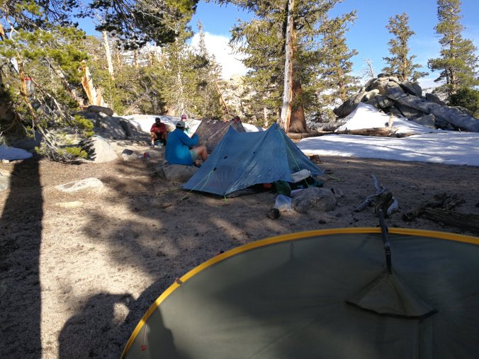 A very late start and a nero. Several reasons, the most important allowing us to rest before a very early start tomorrow to walk Forrester Pass before the snow softens. Most of the way from here is treeless so will get very soft in the afternoon.