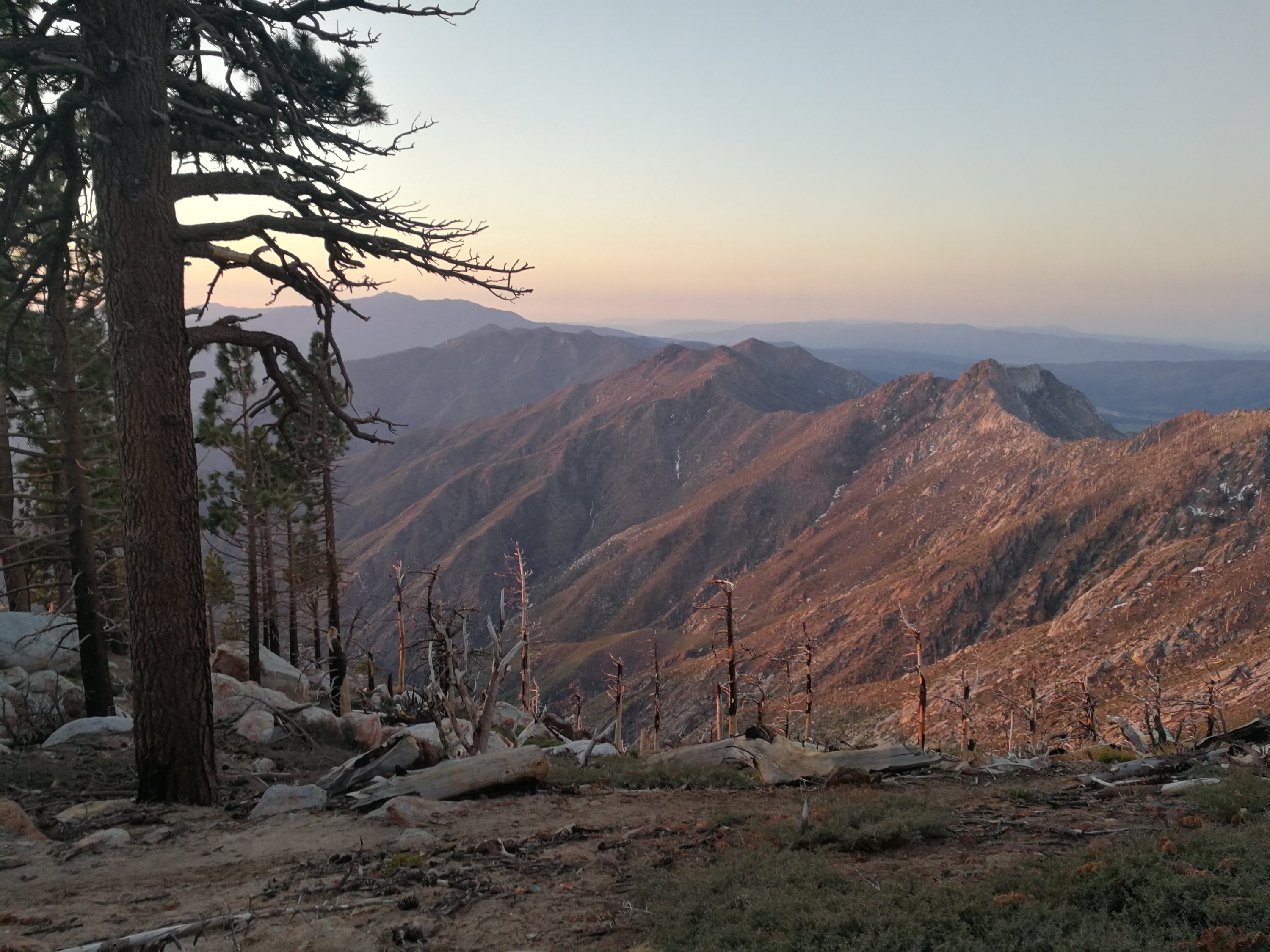 We obviously started late, beautiful scenery but lots of climbing, camped at just shy of 7000′ and watched a lovely sunset over Lake Hemet.