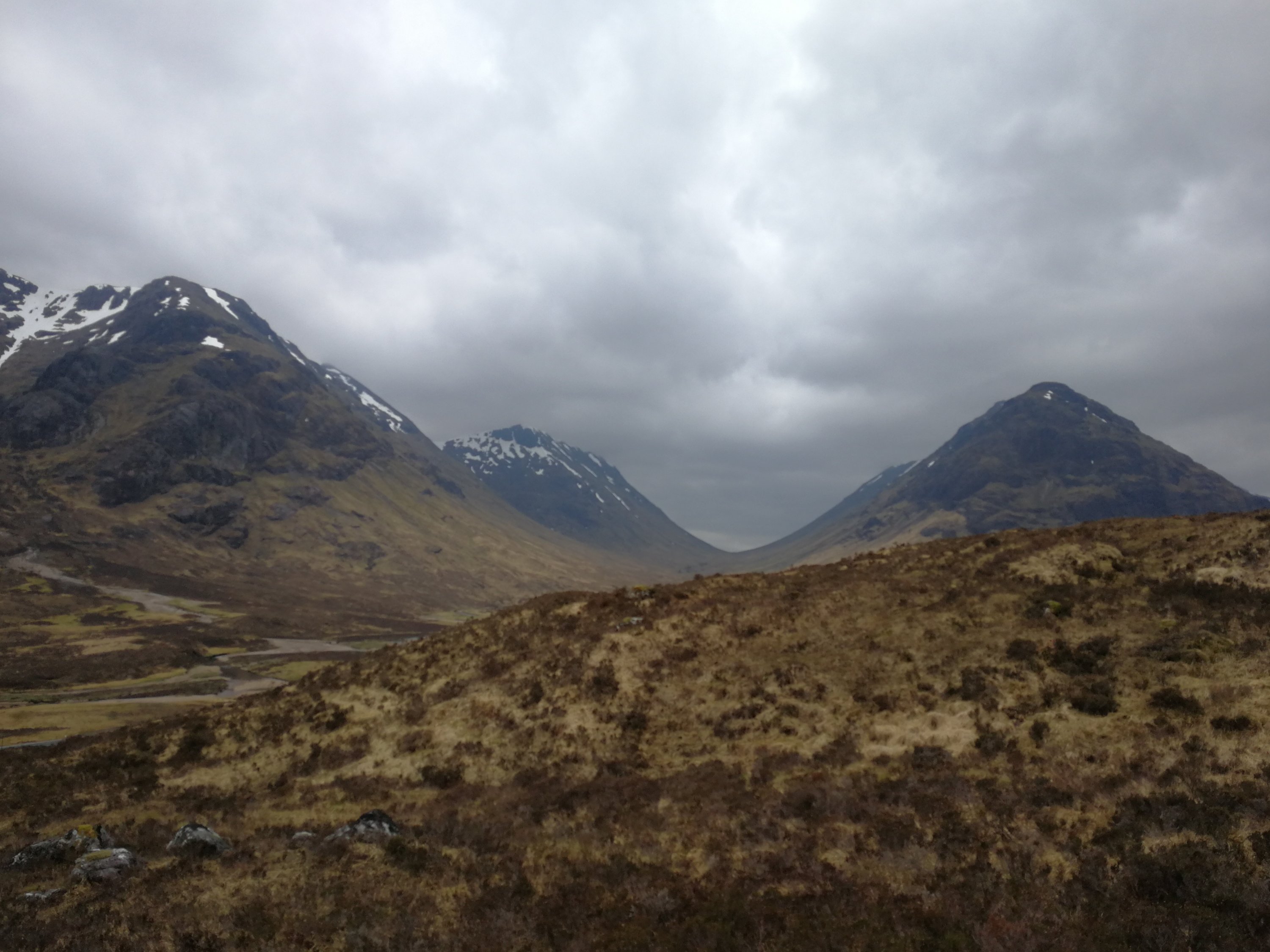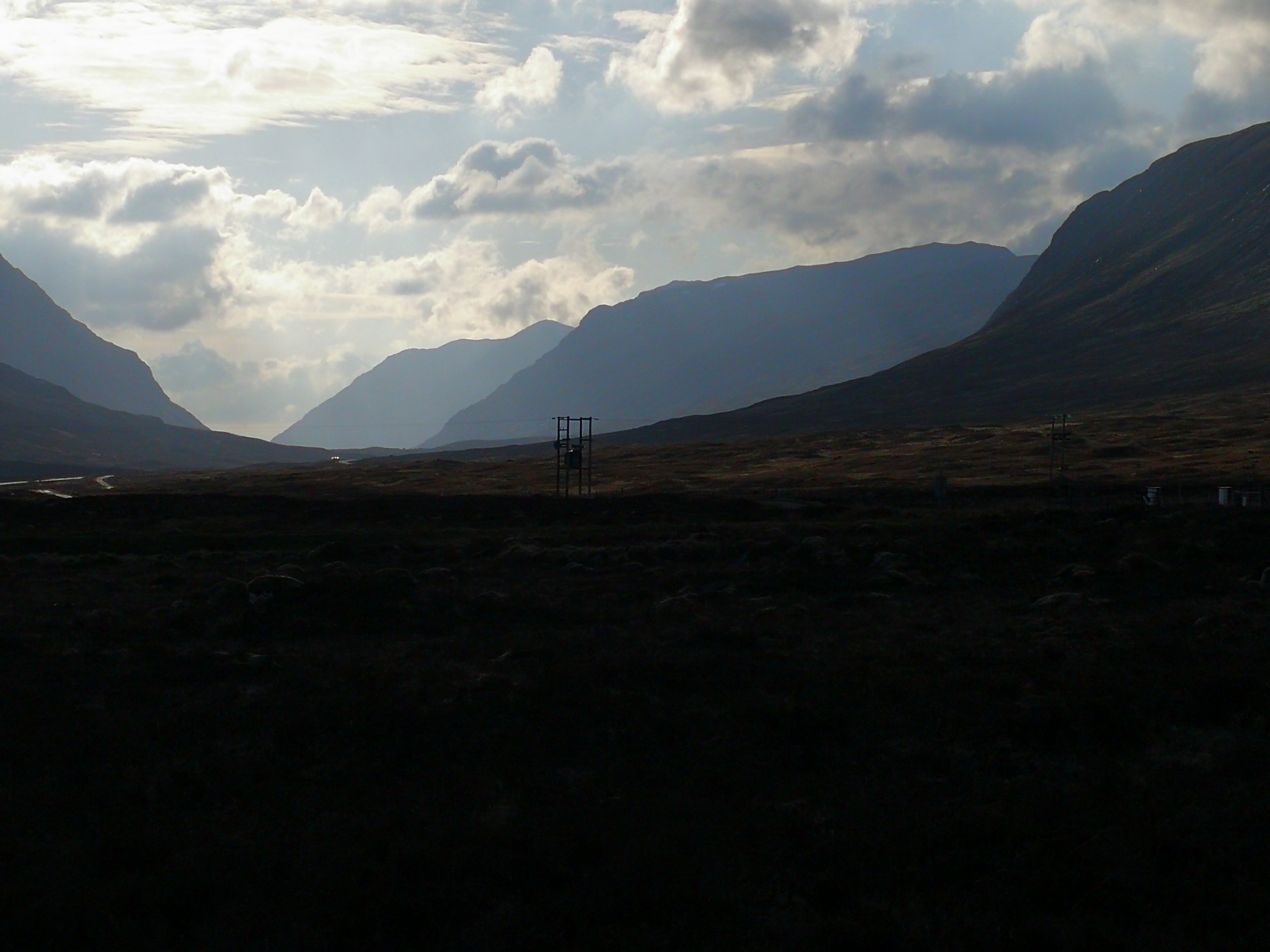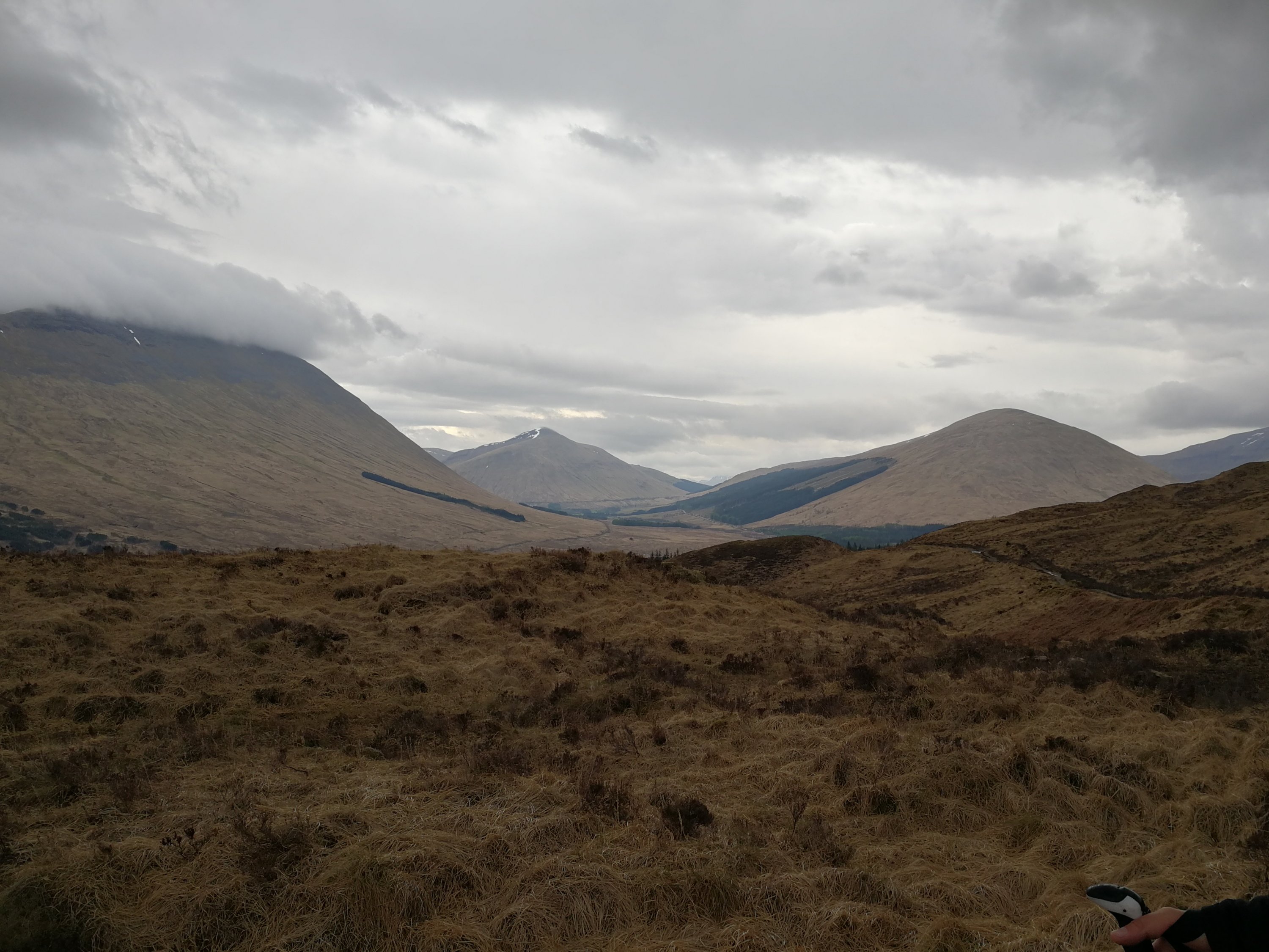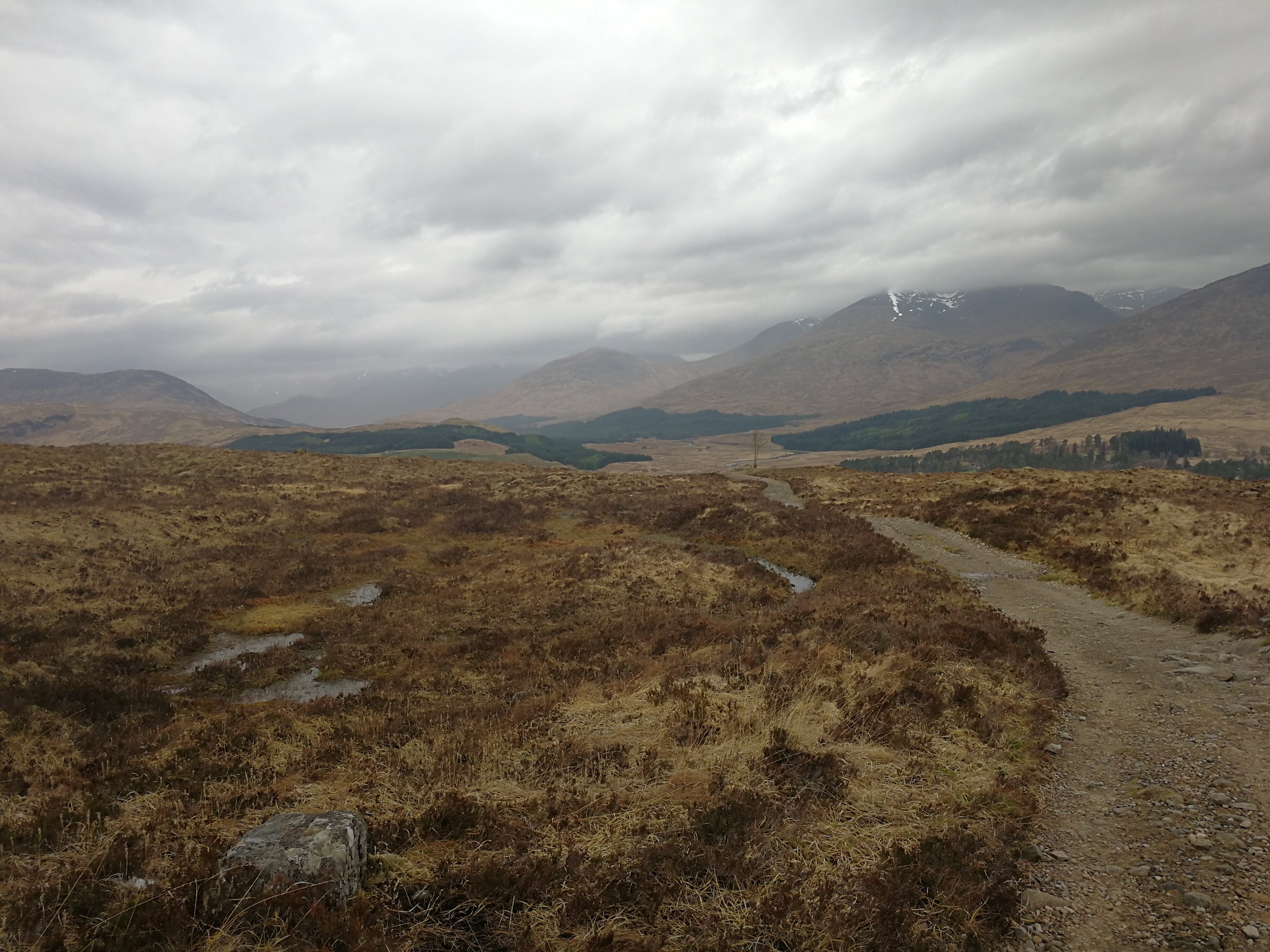 It was an overcast day as we crossed the Orchy to enter Rannoch moor. However visibility was good and the clouds just added to the atmosphere as we crossed Rannoch Moor.