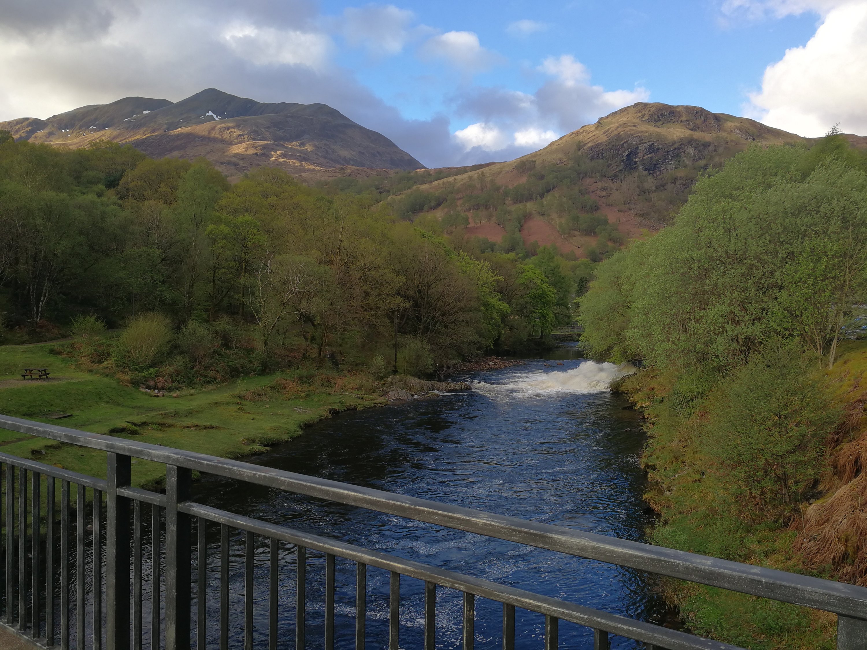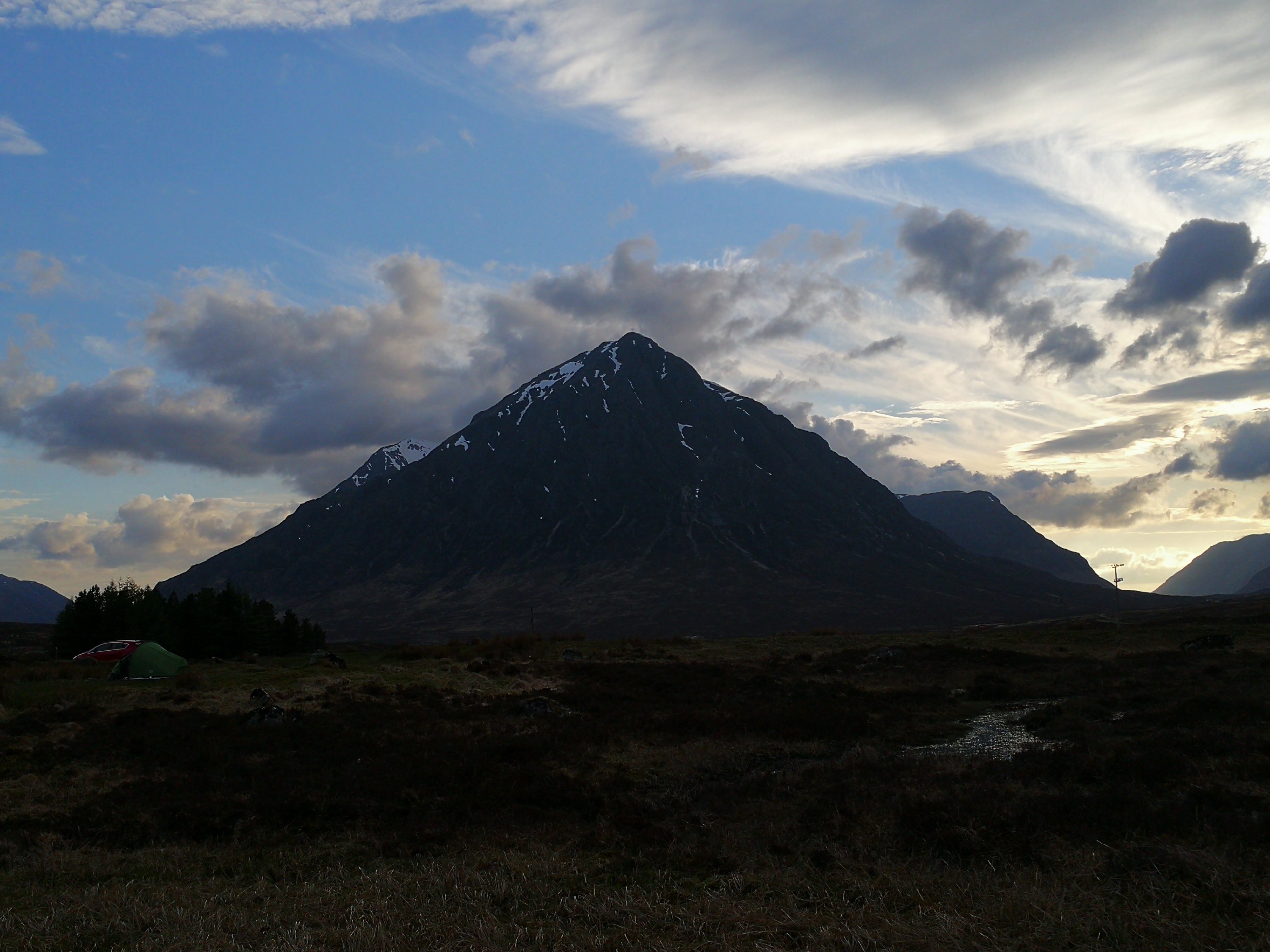 The Kingshouse Hotel was under refurbishment, which was a shame, but we found a beautiful camping spot on the river. Almost immediately, the clouds disappeared an we had a gloriously sunny afternoon! A really idyllic spot with spectacular views.