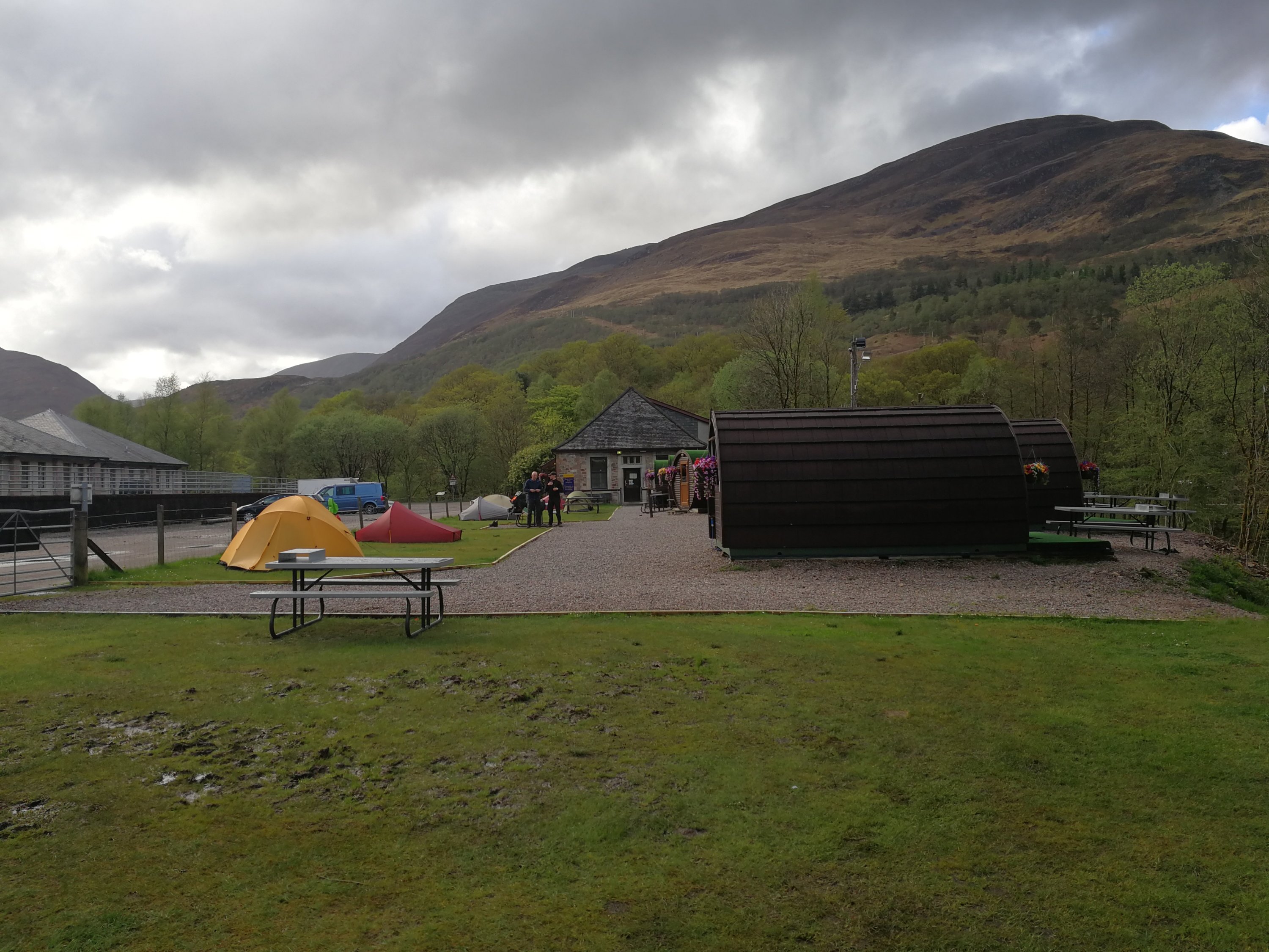 At Kinlochleven there is a rather nice campsite, so we took a short day (a nero? I need to get into PCT speak). The ice climbing centre was open so coffee was enjoyed in the dry. We grabbed the best spot in the campsite beforehand – Freddy’s nous most welcome.